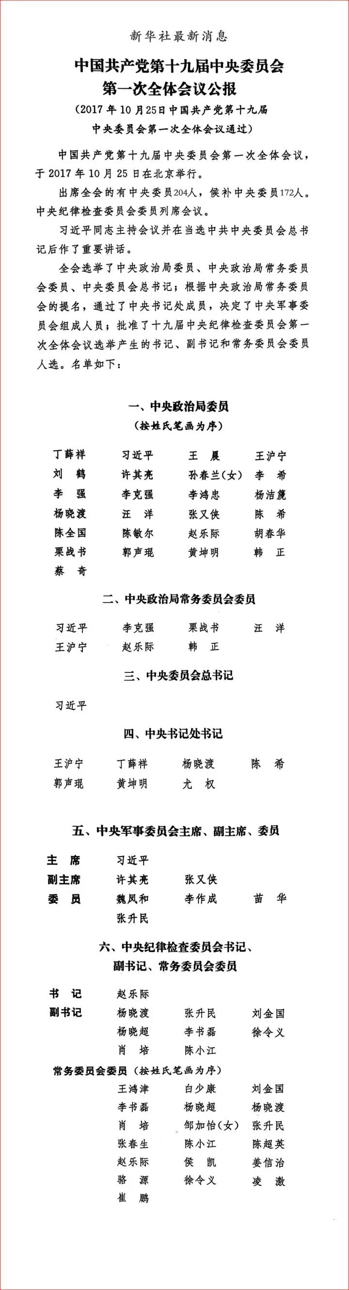 黨的新一屆中央領(lǐng)導(dǎo)機(jī)構(gòu)誕生
