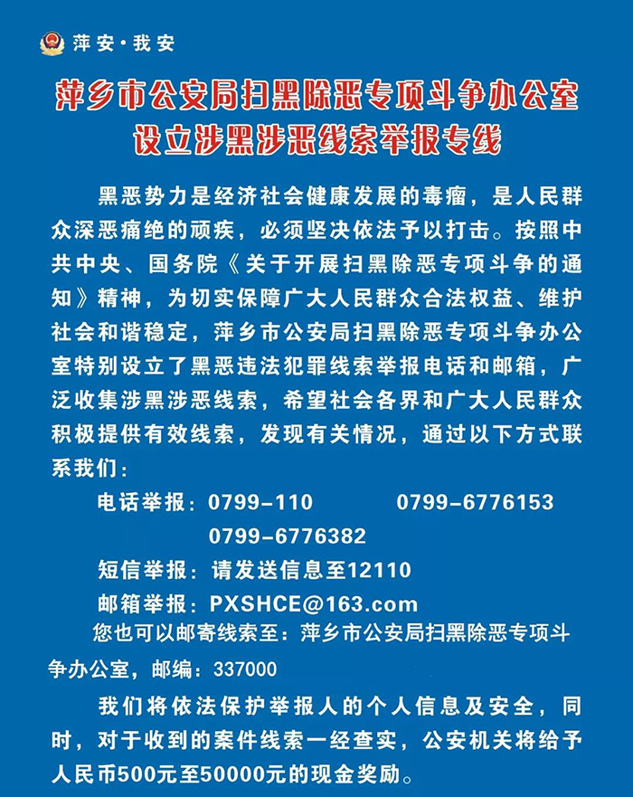 掃黑除惡,全市公安機(jī)關(guān)舉報(bào)電話在這里!