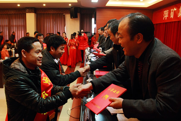 圖為安全工作會(huì)上集團(tuán)公司領(lǐng)導(dǎo)為2014年度安全標(biāo)兵頒獎(jiǎng)。黃優(yōu)中 攝