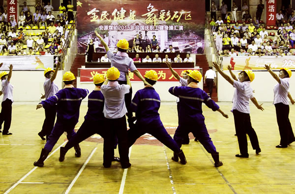 9月29日晚7點(diǎn)30分,安源煤礦體育館內(nèi)人聲鼎沸,座無虛席,該礦“迎國(guó)慶,全民健身舞彩礦區(qū)”職工健身操匯演正在這里舉行。集團(tuán)公司黨委副書記、工會(huì)主席鄒新萍,黨委副書記、紀(jì)委書記董世優(yōu),新聞發(fā)言人、宣傳部長(zhǎng)楊烈佑和安源煤礦黨政班子成員、職工家屬、離退休老同志等1000余人觀看了演出。 此次匯演的節(jié)目有健身操、廣場(chǎng)舞、太極拳、印度舞等多種形式。匯演在安源礦社區(qū)表演的廣場(chǎng)舞《太陽最紅毛主席最親》中拉開帷幕,緊接著萍鄉(xiāng)片區(qū)印度舞《吉米阿佳》,花沖片區(qū)陳氏和諧太極拳,安源礦醫(yī)院健身操《吧吧吧》等一個(gè)個(gè)韻律十足、節(jié)奏明快、氣勢(shì)恢弘的精彩節(jié)目把晚會(huì)推向了高潮。整場(chǎng)演出持續(xù)近2個(gè)小時(shí),貫穿了安源工人熱愛祖國(guó),熱愛黨,緬懷革命先烈,弘揚(yáng)企業(yè)文化,傳承紅色基因的主題,展現(xiàn)了新時(shí)期安源工人的新形象。同時(shí),也充分反映了安源工人面對(duì)當(dāng)前嚴(yán)峻的經(jīng)濟(jì)形勢(shì),團(tuán)結(jié)一心、奮發(fā)向上的激情,勇于擔(dān)當(dāng),共克時(shí)艱,打贏打勝深化改革、扭虧脫困攻堅(jiān)戰(zhàn)的決心和精神風(fēng)貌。
