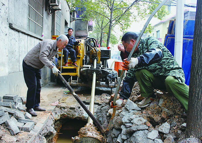 工人們正在施工現(xiàn)場進(jìn)行頂管作業(yè)(鐘江波 攝)