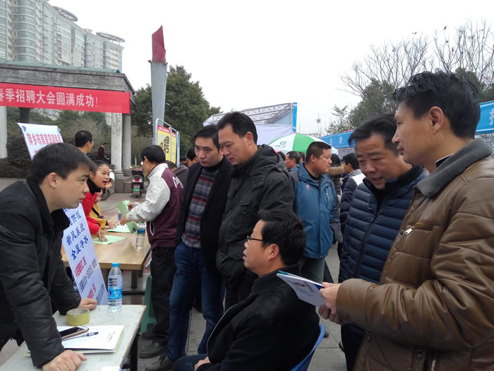 集團公司積極組織去產(chǎn)能單位職工參加萍鄉(xiāng)市春季招聘大會。圖為下崗職工現(xiàn)場咨詢招聘事項。(吳艷輝 攝)