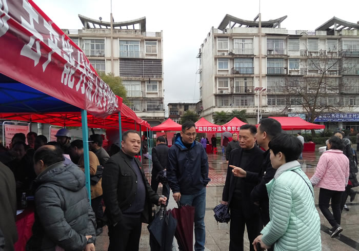 圖為萍鄉(xiāng)市就業(yè)局局長(zhǎng)閔紹榮(右三)等領(lǐng)導(dǎo)到現(xiàn)場(chǎng)指導(dǎo)工作。