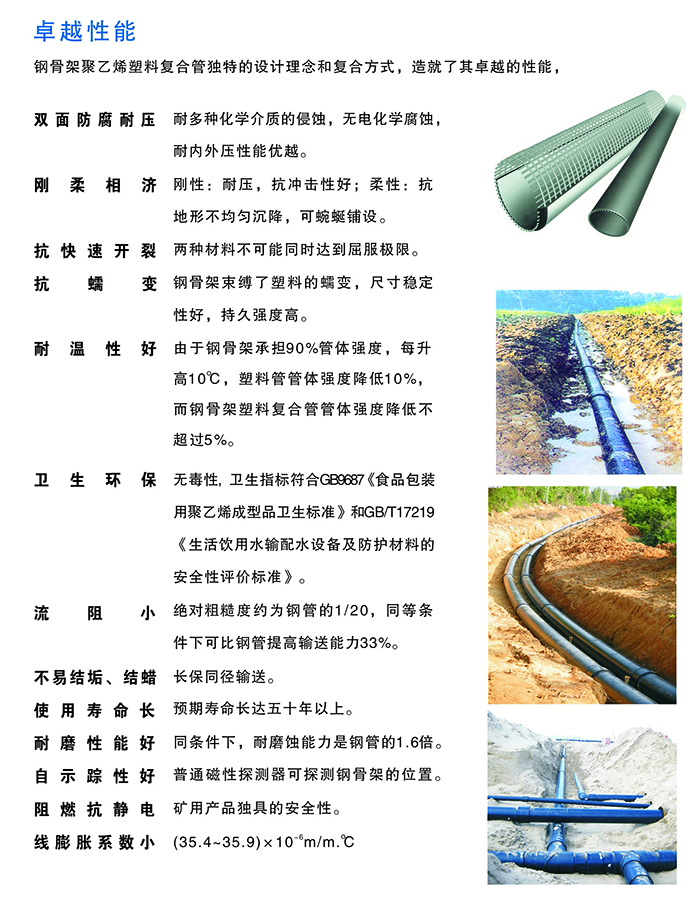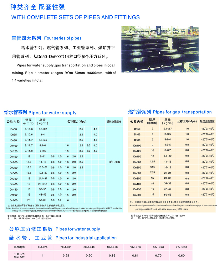 安源管道實(shí)業(yè)股份有限公司始建于2002年,是江西省唯一一家鋼骨架聚乙烯塑料復(fù)合管道生產(chǎn)企業(yè)。公司坐落于江西省萍鄉(xiāng)市高新技術(shù)工業(yè)園玉湖路1號(hào),占地12萬(wàn)平方米,緊鄰滬瑞高速公路,浙贛鐵路線和319、320國(guó)道,距長(zhǎng)沙黃花機(jī)場(chǎng)僅70分鐘車(chē)程。公司注冊(cè)資本7650萬(wàn)元,現(xiàn)有員工305人,其中大專(zhuān)以上學(xué)歷人員84人,擁有高級(jí)職稱(chēng)人員12人,專(zhuān)職研發(fā)人員32人,是集產(chǎn)品專(zhuān)業(yè)化研發(fā)、生產(chǎn)、營(yíng)銷(xiāo)、技術(shù)服務(wù)、人才培訓(xùn)為一體的現(xiàn)代化管道企業(yè),自2013年起連續(xù)被評(píng)為高新技術(shù)企業(yè),并于2016年12月在“新三板”成功掛牌,證券代碼:870160。 安源管道公司擁有當(dāng)今國(guó)內(nèi)技術(shù)領(lǐng)先的12條生產(chǎn)線及配套的管件生產(chǎn)設(shè)備,年生產(chǎn)各種管徑的鋼骨架塑料復(fù)合管和鋼絲網(wǎng)骨架塑料復(fù)合管產(chǎn)達(dá)1000公里。產(chǎn)品遠(yuǎn)銷(xiāo)國(guó)內(nèi)30多個(gè)省、市,并出口國(guó)外,用戶(hù)達(dá)2000余家,廣泛應(yīng)用于石油、化工、燃?xì)、供水、采礦等行業(yè),是目前國(guó)內(nèi)唯一能生產(chǎn)Dn600鋼骨架聚乙烯塑料復(fù)合管的企業(yè)。 安源管道公司創(chuàng)建10余年來(lái),牢固樹(shù)立科技興企、質(zhì)量興企的發(fā)展意識(shí),大力實(shí)施品牌化生產(chǎn)、差異化發(fā)展戰(zhàn)略,全面提升產(chǎn)品研發(fā)與市場(chǎng)競(jìng)爭(zhēng)力,先后有66個(gè)項(xiàng)目取得國(guó)家專(zhuān)利(其中3項(xiàng)發(fā)明專(zhuān)利),形成了具有高市場(chǎng)占有率的品牌優(yōu)勢(shì)。公司經(jīng)濟(jì)效益連續(xù)多年穩(wěn)步增長(zhǎng),先后被評(píng)為江西省國(guó)資委先進(jìn)基層黨組織、江西省質(zhì)量管理先進(jìn)企業(yè)、江西省名牌產(chǎn)品、江西省高新技術(shù)企業(yè)、萍鄉(xiāng)市市長(zhǎng)質(zhì)量獎(jiǎng)、江西省模范職工之家、江西省五一勞動(dòng)獎(jiǎng)狀、江西省職業(yè)道德標(biāo)兵單位、萍鄉(xiāng)十大品牌企業(yè)、萍鄉(xiāng)市開(kāi)發(fā)區(qū)“五星”信用示范企業(yè)、萍鄉(xiāng)市開(kāi)發(fā)區(qū)知識(shí)產(chǎn)權(quán)示范企業(yè)等。公司“企業(yè)技術(shù)中心”經(jīng)省工信委認(rèn)定為“省級(jí)企業(yè)技術(shù)中心”。 安源管道公司以“質(zhì)量為本,服務(wù)客戶(hù),用戶(hù)至上”的發(fā)展理念,竭誠(chéng)為廣大用戶(hù)服務(wù);同時(shí)以精良的現(xiàn)代工藝、嚴(yán)密的質(zhì)量控制、完善的服務(wù)體系、誠(chéng)實(shí)守信的經(jīng)營(yíng)理念,致力于不斷發(fā)展管道制造業(yè)。 產(chǎn)品介紹: