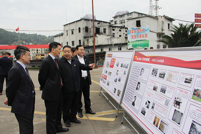 圖為萍礦集團(tuán)執(zhí)行董事、總經(jīng)理、黨委負(fù)責(zé)人吳培南在觀看展覽。