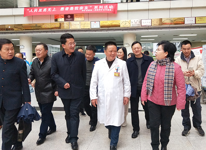圖為聶曉葵(右一)在湘雅萍礦合作醫(yī)院實地督導(dǎo)文明創(chuàng)建工作。