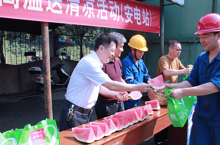 “辛苦了,現(xiàn)在天氣炎熱,大家要多注意安全和身體……”一句句樸實(shí)、暖心的話語,就像一陣陣涼爽的清風(fēng),沁入奮戰(zhàn)在高溫酷暑一線的萍礦干部職工心坎上。 連日高溫,酷熱難耐。8月6日—7日,萍礦集團(tuán)領(lǐng)導(dǎo)吳培南、劉智明、徐建軍、江蘇波、徐松明分成兩組,先后來到浮法玻璃廠、安源發(fā)電廠,安源管道公司和萍礦工程公司項(xiàng)目現(xiàn)場(chǎng),深入生產(chǎn)車間、施工工地開展高溫送“清涼”活動(dòng),讓大家真切感受到了企業(yè)大家庭的溫暖。 每到一處,萍礦集團(tuán)領(lǐng)導(dǎo)都詳細(xì)了解干部職工作業(yè)環(huán)境、勞動(dòng)強(qiáng)度等情況,為他們送去防暑降溫物品和西瓜,更送去了夏日的一片“清涼”。他們還特別叮囑各單位負(fù)責(zé)人要多關(guān)心職工的工作和生活,尤其是現(xiàn)在正處于高溫季節(jié),要認(rèn)真做好防暑降溫工作,把防暑降溫措施落實(shí)到位,確保職工安全度夏,真正做到有序生產(chǎn)、安全生產(chǎn)。 在浮法玻璃廠,萍礦集團(tuán)黨委書記、董事長、總經(jīng)理吳培南親切地握著當(dāng)班職工的手,語重心長地提醒他們注意安全、注意防暑。在窯頭投料口,吳培南詳細(xì)了解了當(dāng)天的安全、生產(chǎn)情況,并不顧窯頭100多度高溫,拿著觀察鏡片仔細(xì)、認(rèn)真地觀察了窯內(nèi)火焰燃燒情況。 “現(xiàn)在你們廠因洗渣原因,影響發(fā)電,大家要在確保安全的前提下,齊心協(xié)力攻堅(jiān)克難,全力保生產(chǎn)保發(fā)電!痹诎苍窗l(fā)電廠,吳培南有說有笑地與當(dāng)班職工親切交談!拔沂沁\(yùn)行車間的,他是維修車間的。目前我們雖然有一些困難,但我們將一如既往地堅(jiān)守崗位、履職盡責(zé),只求企業(yè)能盡早脫困。謝謝領(lǐng)導(dǎo)對(duì)我們一線員工的關(guān)心。” 職工們一邊吃著西瓜,一邊表著決心。 據(jù)悉,此次崗位送“清涼”活動(dòng)共發(fā)放了522份防暑降溫物品至上述單位以及武功山休閑旅游公司的高溫崗位人員。