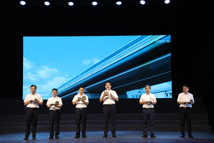 “我們的人民熱愛生活,期盼有更好的教育、更穩(wěn)定的工作、更滿意的收入、更可靠的社會保障、更高水平的醫(yī)療衛(wèi)生服務(wù)、更舒適的居住條件、更優(yōu)美的環(huán)境,期盼孩子們能成長得更好、工作得更好、生活得更好。人民對美好生活的向往,就是我們的奮斗目標(biāo)!彪S著習(xí)近平總書記重要講話視頻結(jié)束,集團領(lǐng)導(dǎo)班子成員慷慨激昂地接續(xù)誦讀《習(xí)近平新時代中國特色社會主義思想專題摘編》中“堅持以人民為中心”部分內(nèi)容,用激情澎湃、高昂向上的時代強音,激蕩起廣大黨員干部的昂揚斗志,展現(xiàn)出新時代領(lǐng)導(dǎo)班子的卓然風(fēng)采,充滿了濃濃的愛國情、向黨志、人民情!白屓w中國人民和中華兒女在實現(xiàn)中華民族偉大復(fù)興的歷史進程中共享幸福和榮光!”鏗鏘有力的誦讀將整場活動推向高潮,現(xiàn)場響起熱烈掌聲。