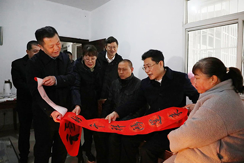 劉爍首先來(lái)到困難職工江雪良家中,一入戶便仔細(xì)環(huán)顧他的居住生活環(huán)境!疤炖淞耍依镞暖和吧?”看著地上的取暖器,劉爍暖心地詢問(wèn),并叮囑他們烤火時(shí)一定要注意安全。得知江雪良右眼殘疾,其妻患病還在治療中,劉爍情真意切地說(shuō)道:“要積極接受治療,有什么困難,組織上會(huì)想辦法幫助解決的!眲q緩緩打開市總工會(huì)贈(zèng)送的春聯(lián),深情地念道:“‘門迎百福吉星照,戶納千祥鴻運(yùn)來(lái)’,橫批‘迎福納祥’。馬上過(guò)春節(jié)了,再把這副春聯(lián)貼起來(lái),增添喜慶的氛圍,相信生活會(huì)越過(guò)越好。”江雪良接過(guò)慰問(wèn)金和春聯(lián),感激地連連說(shuō)謝謝,他妻子則不時(shí)地擦拭眼角的淚花。