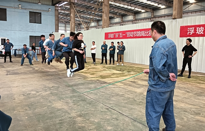 為慶祝即將到來的“五一”國際勞動節(jié),4月29日,浮法玻璃廠開展“慶五一”跳繩比賽,來自8個支部的48名職工參賽。 比賽還未開始,現(xiàn)場氣氛就異常熱烈,參賽選手早早進入賽場。只見大家8人一組,一字排開,個個都鉚足了勁、信心十足。隨著裁判員一聲令下,各小組便展開了激烈的角逐,選手之間似乎心有靈犀,起跳、跨步、落地,每一步都整齊劃一、配合默契。一旁的啦啦隊也是拼命加油鼓勁,吶喊聲、鼓勵聲、歡笑聲此起彼伏,回蕩整個賽場,現(xiàn)場熱鬧非凡。選手們盡情揮舞著手中的跳繩,在空中劃出一道道優(yōu)美的弧線,呈現(xiàn)出一幅幅“繩”采飛揚的生動場景。 經(jīng)過激烈角逐,該廠生產(chǎn)工藝黨支部獲得第一名!巴ㄟ^比賽,不僅活躍了職工文體生活氛圍,同時也促進了職工之間的交流互動,體現(xiàn)了大家團結(jié)一致、緊密配合的工作作風(fēng),展現(xiàn)了職工積極向上、奮力拼搏、昂揚奮進的姿態(tài)與面貌!痹搹S有關(guān)負(fù)責(zé)人表示。