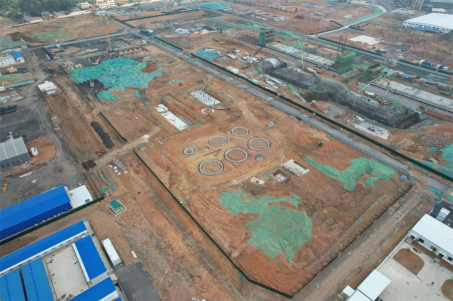 化產(chǎn)區(qū)域:硫銨廠房基礎(chǔ)短柱混凝土澆筑完成;焦油氨水分離罐基礎(chǔ)混凝土澆筑完成;洗脫苯工段洗苯塔及終冷器基礎(chǔ)承臺混凝土澆筑完成;冷鼓工段初冷器底板鋼筋綁扎完成;焦化罐區(qū)粗苯罐組防火堤混凝土澆筑完成。