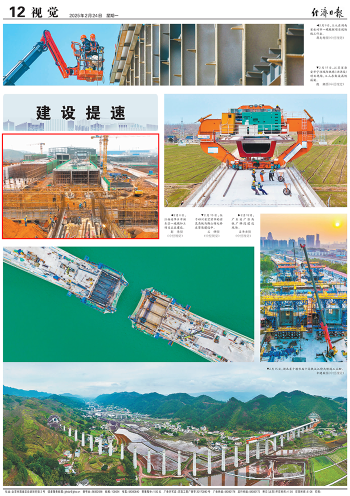 2月24日,《經(jīng)濟(jì)日報(bào)》以整版圖片分別報(bào)道全國各地項(xiàng)目建設(shè)提速,其中展現(xiàn)了萍礦玻璃項(xiàng)目的火熱建設(shè)場景。