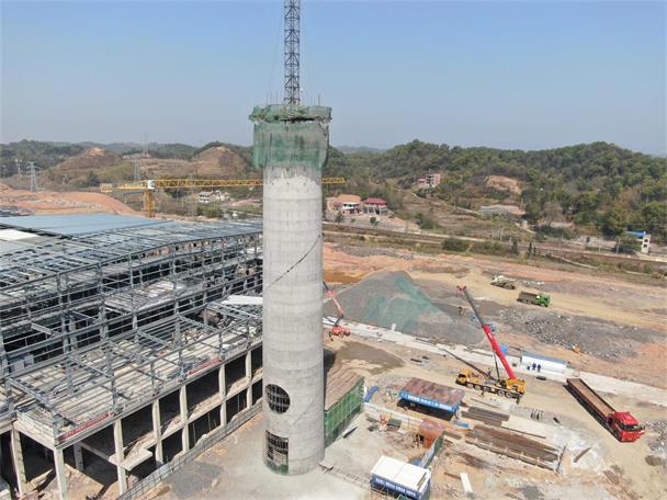 煙囪:基礎(chǔ)工程完成,主體工程完成45%。