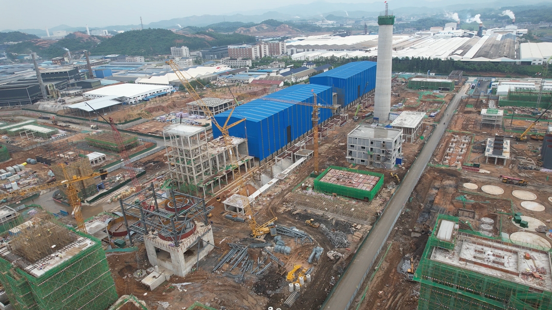 3.干熄焦主體基礎(chǔ)施工完成,鋼結(jié)構(gòu)開始安裝;熄焦塔澆筑至33米。
