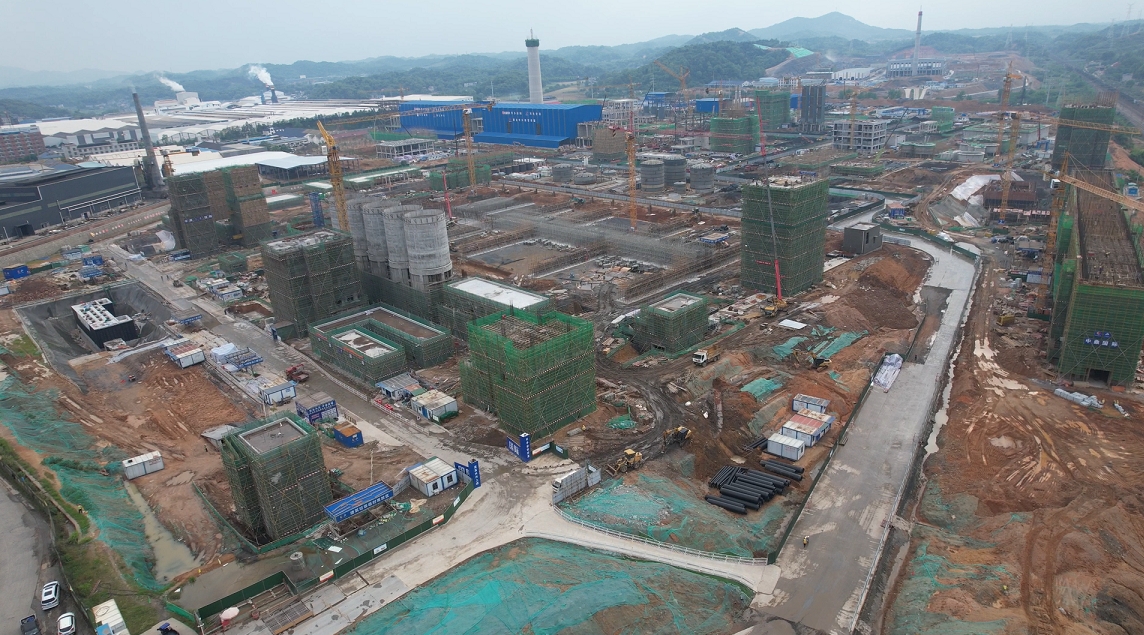 7. 制酸干吸工段、預(yù)處理工段結(jié)構(gòu)封頂,焚燒爐基礎(chǔ)完成,凈化工段施工至二層。