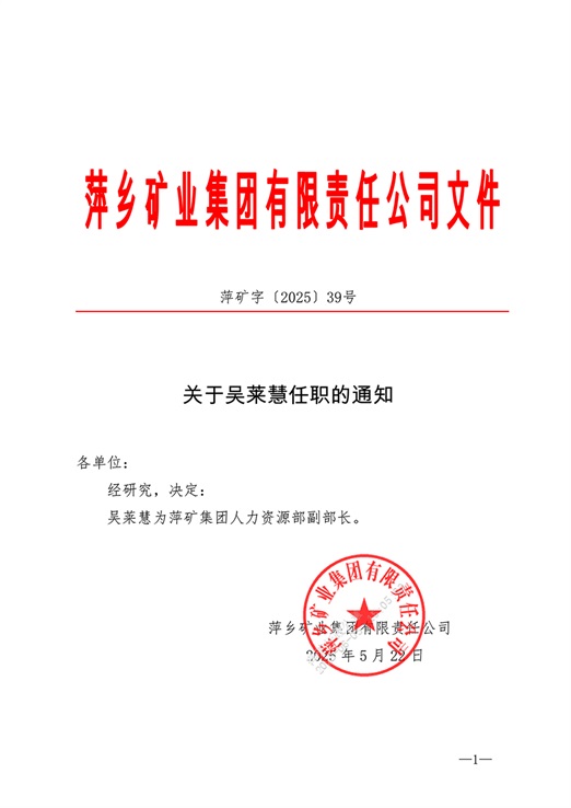 關于吳萊慧任職的通知