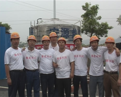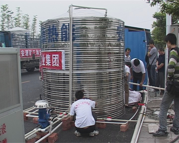 5月20日由萍鄉(xiāng)出發(fā)的萍礦集團安源熱能公司捐贈四川災區(qū)的、兩臺價值30萬元熱能熱水機組經(jīng)過32小時的一路急行,于5月21日晚10時許到達四川錦陽,經(jīng)過技術(shù)安裝人員爭分奪秒地緊張施工,兩臺熱能機組分別在錦陽九洲體育館和南河體育館安裝完畢,讓災區(qū)人民在最早時間洗上了熱水澡。