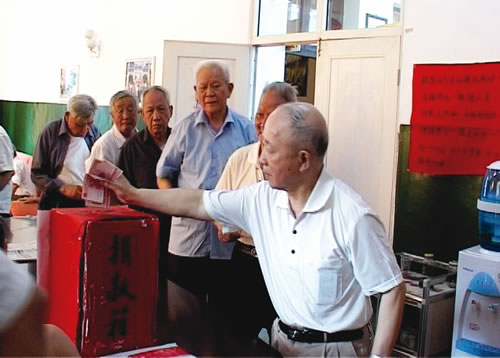 在支援抗震救災(zāi)的義捐活動(dòng)中,離退休老同志的行為值得稱道。安源礦有7位退休職工分別向?yàn)?zāi)區(qū)捐款1000元,70歲的老黨員溫發(fā)云本打算5月中旬去北京旅游,汶川地震發(fā)生后,他取消旅游計(jì)劃,把用于旅游的1000塊錢捐給了災(zāi)區(qū)。許多老同志躺在病榻上仍心系災(zāi)區(qū),念念不忘要為災(zāi)區(qū)人民盡一份綿薄之力。退休老干部李繼武股骨頭壞死,剛從北京治病回來(lái),就一跛一拐地來(lái)到機(jī)關(guān)退休工作站捐上500元。90多歲的高蘭亭老人每月靠240元撫恤費(fèi)生活,也從微薄的收入中拿出100元錢捐給災(zāi)區(qū)。