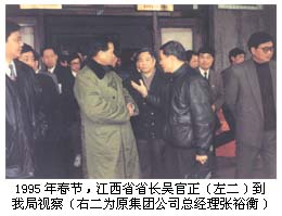 1998年1月,江西省省長舒圣佑、副省長朱英培和省直有關部門的負責人一行,來萍礦視察工作,看望了節(jié)日加班,堅守工作崗位的職工。