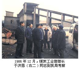 1986年12月,煤炭工業(yè)部部長于洪恩到萍礦視察,并下到安源礦井了解采掘一線情況,訪問工人。