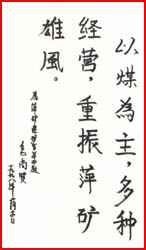 陜西省省長(原萍鄉(xiāng)礦務(wù)局局長)程安東題詞