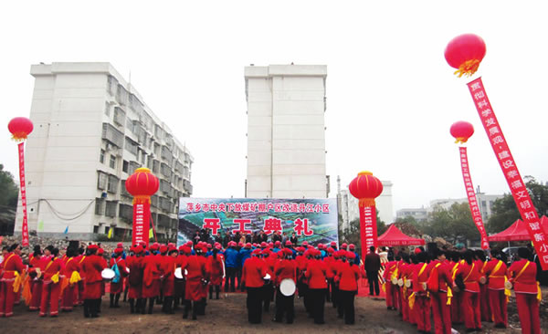 11月16日上午,丹江街江礦家屬區(qū)俱樂(lè)部?jī)?nèi)響起了熱鬧的鑼鼓,扭起了歡快的秧歌,萍鄉(xiāng)市中央下放煤礦棚戶區(qū)改造丹江小區(qū)開(kāi)工典禮在這里舉行,市委常委、常務(wù)副市長(zhǎng)張和平蒞臨典禮并宣布工程開(kāi)工,萍礦集團(tuán)公司董事長(zhǎng)、黨委書(shū)記彭志祥參加了典禮并講話。